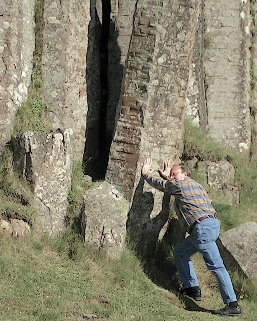 Ever since his first visit to Iceland in 2006, Peter has struggled to save it’s picturesque geological features from the ravages of time and its infamous co-conspirator, the law of entropy. Here, he attempts to slow the collapse of a large column of basalt.